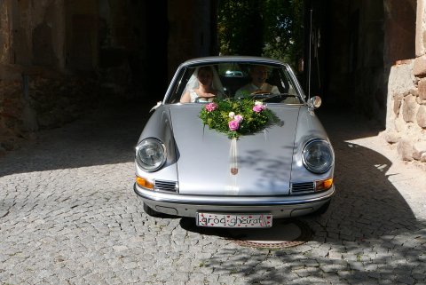 Männer die Heiraten, brauchen MUT, Mut an der Grenze zum Wahnsinn. Wer in einem 40 Jahre alten Porsche mit Massivholzlenkrad ohne Gurte und Kopfstützen antritt, ist hier schon einmal klar im Vorteil!