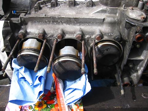 Es fing die härteste Zeit an. Das Putzen von Motorblock, Kolben, Zylindern,