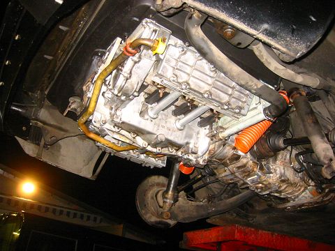 12 Stunden. Noch Abgasanlage ab und Antriebswellen ausgebaut und dann war er draußen.