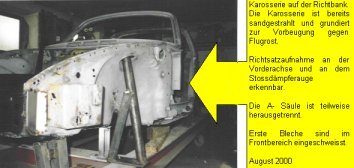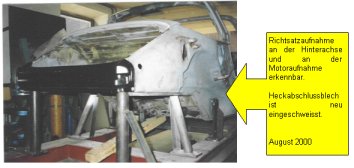 Die Karosserie wurde auf einer Rahmenrichtbank geschweisst, um wieder alle Karosseriepunkte passend zu haben.